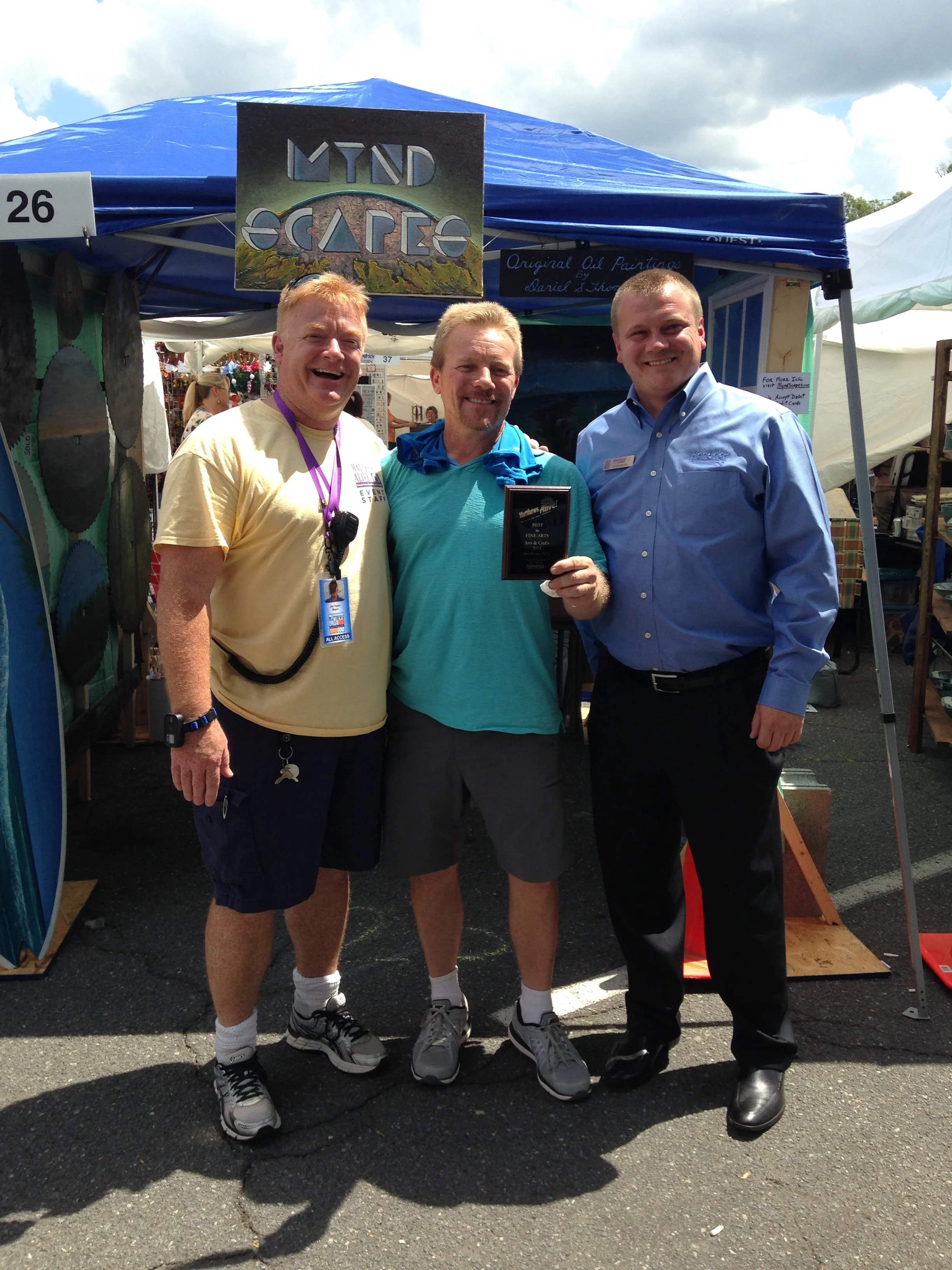 Matthews Alive was MyndScapes' first ever art show, and it ended on a positive note with Daniel Thomson winning "Best in Fine Arts" out of over 160 art booths featuring artisans from all over the eastern United States!